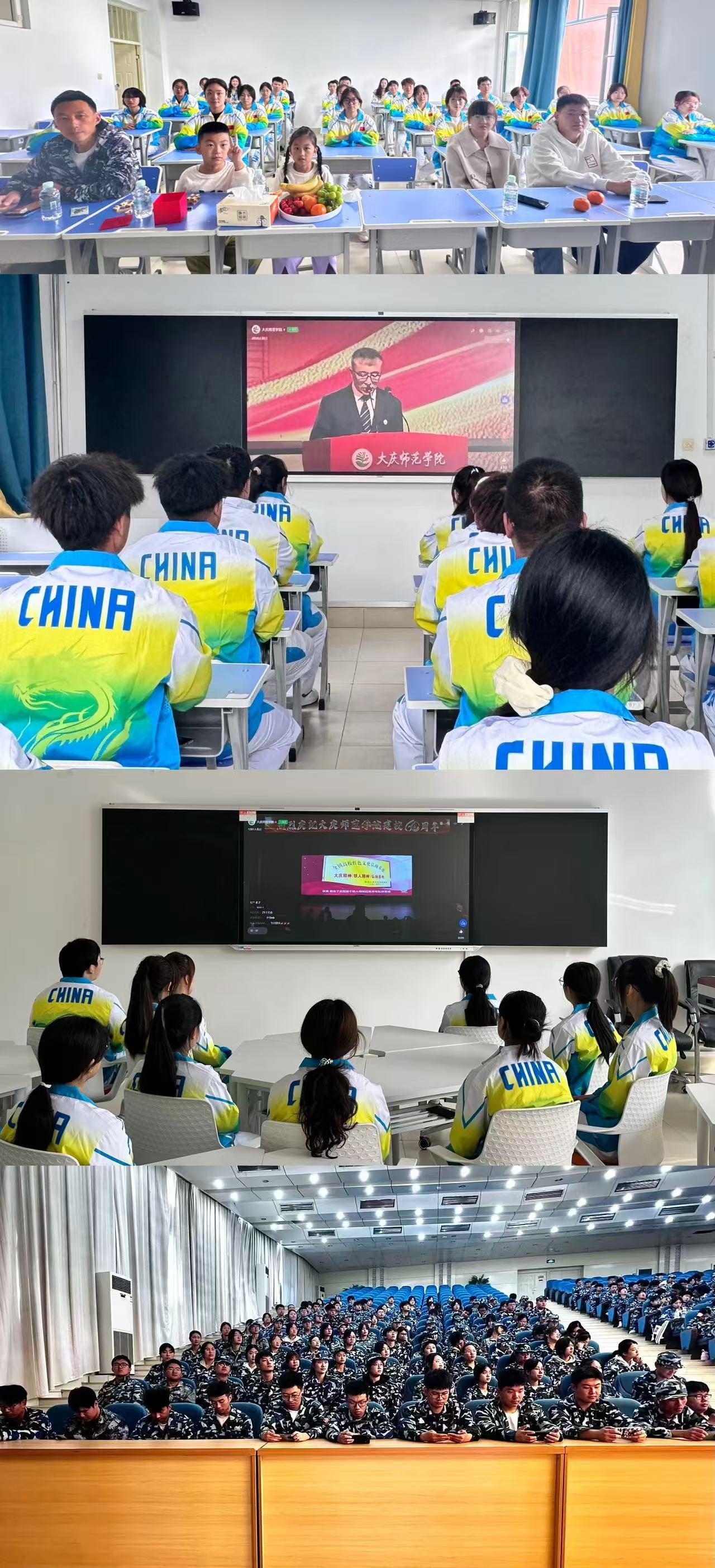 上午9:30,学校建校60周年高质量发展大会正式启幕。校友齐聚大学生活动中心,在满是校园元素的温馨氛围中交流;学生则在学院教室及铁人讲堂通过收看直播追随大会进程,他们或端坐记录,或专注凝视,不时与同伴互动。同学们纷纷表示,通过大会既加深了对学校的认识,也明确了大学努力方向。