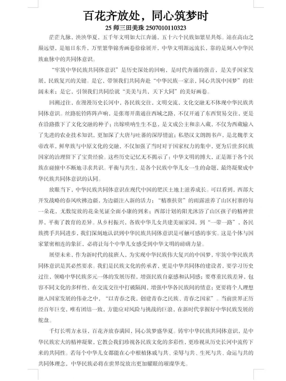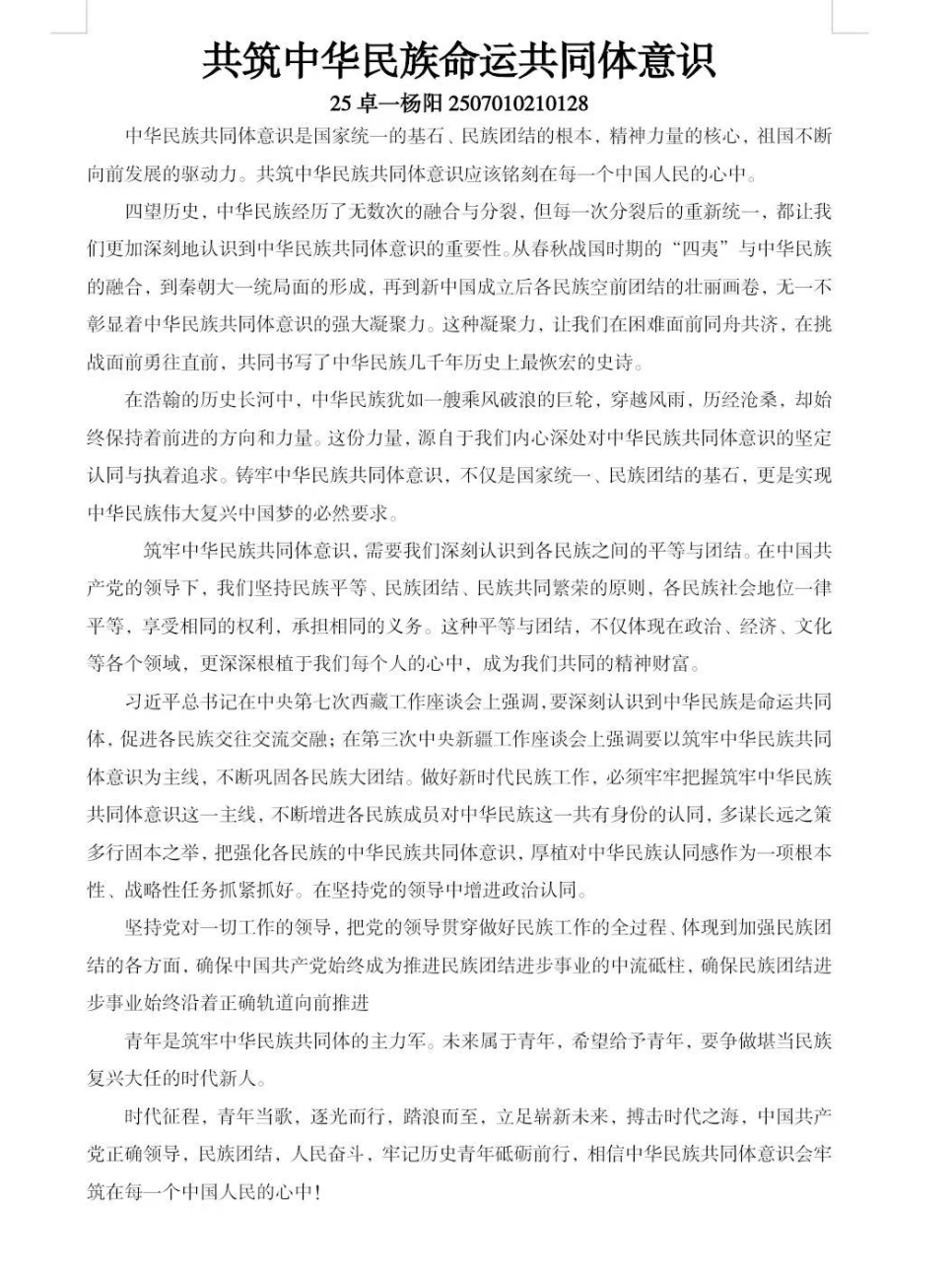 为深入贯彻落实中央民族工作会议精神,铸牢中华民族共同体意识,千亿国际娱乐组织师生参与“铸牢中华民族共同体意识”主题征文活动,旨在展现出我院师生对民族团结的理解与认同。