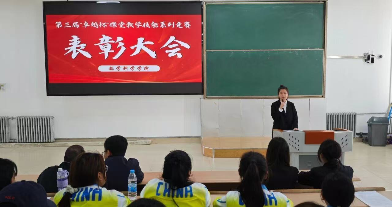 大会伊始,副院长沙元霞强调职业技能训练重要性并鼓励学生以赛夯实基础,党总支书记、院长高扬随后发言肯定赛事价值,寄语学生秉持“卓越”精神成长。技能展示环节,获奖学生代表王楠现场说课讲课,凭清晰思路与生动互动展现教学能力;获奖学生代表包立雪的讲课视频,以沉稳台风与专业讲解获得认可。随后,党总支书记、院长高扬,副院长沙元霞及学院教师贾连广为获奖学生颁奖,证书肯定其技能与努力。大会尾声,23级学生汤迪作为获奖学生代表分享参赛心得,结合备赛经历讲述从技能生疏到熟练的成长过程。最后,副院长沙元霞总结并强调职业技能价值,希望学生以获奖者为榜样提升能力。同学们纷纷表示,此次大会让他们深刻感受到崇尚技能、追求卓越的意义,未来会以获奖学生为榜样,扎实打磨教学技能。