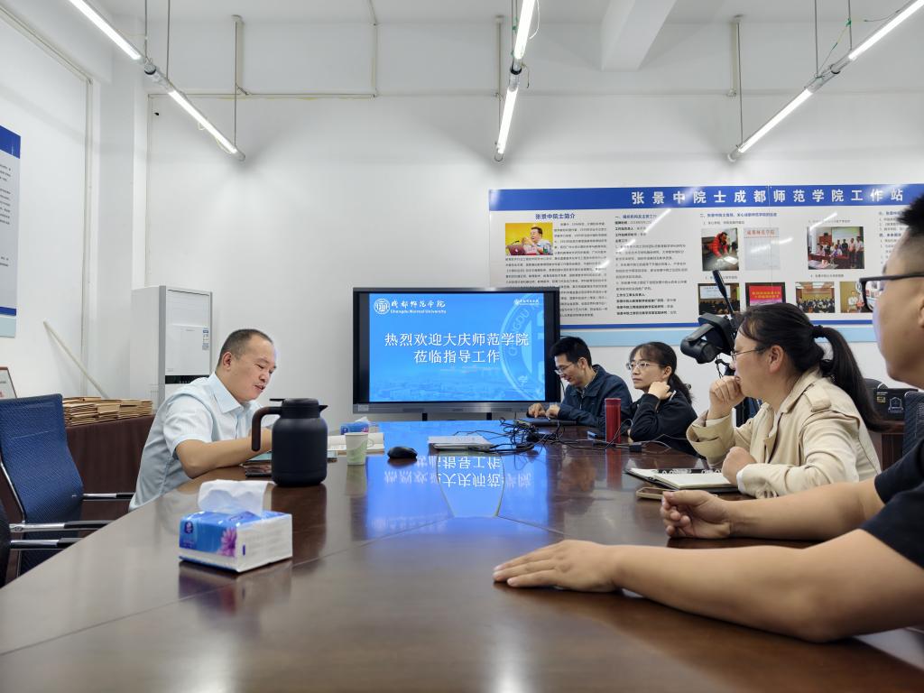 成都师范学院数学学院院长牟天伟、副院长张玉林及教师赵晓燕、李涵共同参与座谈。双方围绕《网络画板》与《教育数学》的课程建设进行了深入交流。张玉林副院长系统介绍了该院在专业建设、师资队伍、科研成果及人才培养等方面的工作成效。随后,赵晓燕与李涵老师详细分享了《网络画板》与《教育数学》两门课程的建设思路、教学团队构建以及人才培养的具体实践。