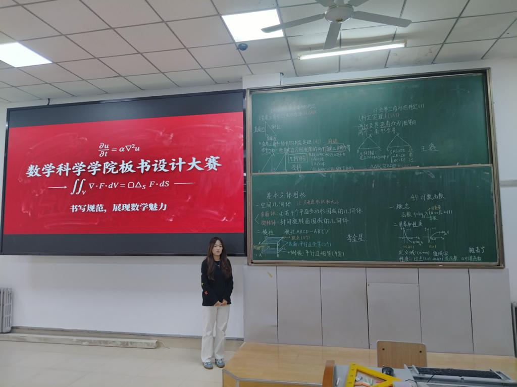 为检验数学与应用数学专业师范生职业技能训练成果,提升师范生基本功,千亿国际娱乐于2025年10月23日17点20分在计算机楼113举办板书设计大赛。