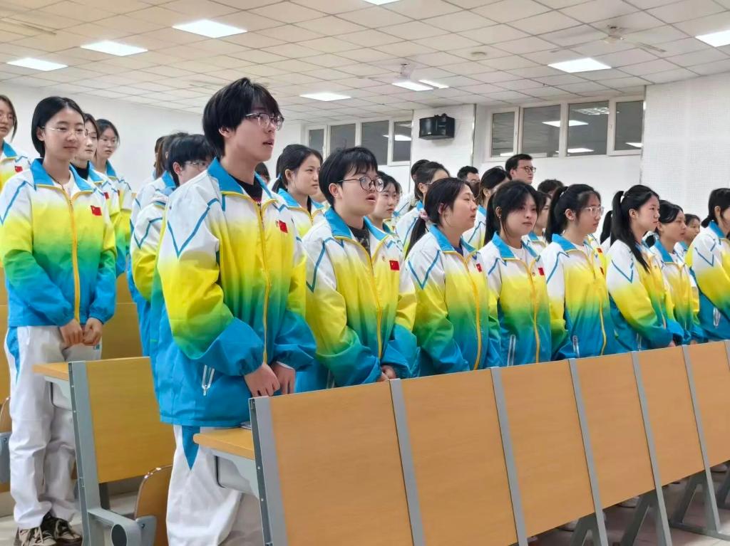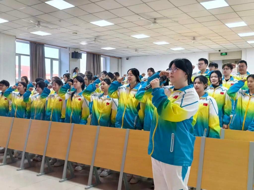 入团仪式在庄严的《义勇军进行曲》中拉开帷幕。老团员为新团员佩戴团徽,随后全体团员面向团旗庄严宣誓,铿锵誓言彰显青春担当。新团员代表郑重表态,将以团员标准严格要求自己,在学业中锤炼过硬本领,在实践中勇担使命。优秀团员代表在发言中首先向新团员表示祝贺,并结合自身成长经历分享感悟,号召大家牢记入团誓词,以先进典型为榜样,在思想上追求进步、学业上勤学善思、实践中勇挑重任。最后,本次新发展团员入团仪式在《中国共产主义青年团团歌》的歌声中圆满落幕。