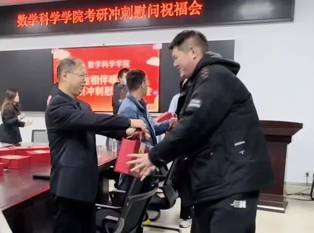 在暖心慰问环节,学院向考研学子送上定制“考研加油礼包”。礼包满载着老师们的殷切期盼与深切关怀,让同学们切实感受到学院的温暖与支持。同学们纷纷表示,这份关怀既是物质上的支持,更是精神上的激励,将怀揣这份暖意坚定前行,全力冲刺考研。
