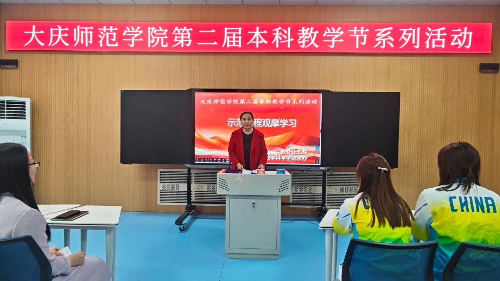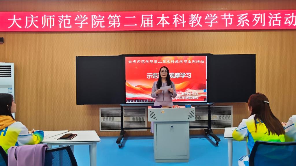 为积极落实学校本科教学节工作部署,搭建教学交流平台,推动学院教育教学改革走深走实,助力教师教学能力全面提升,2026年4月15日13:30,由学校教务处主办、千亿国际娱乐承办的第二届本科教学节系列活动之课堂教学示范课第一次观摩活动顺利举办。教务处副处长姜秀丽出席活动并致辞,千亿国际娱乐副院长沙元霞主持本次活动,学院及全校各院系参与观摩的教师共同参加此次教学交流活动。