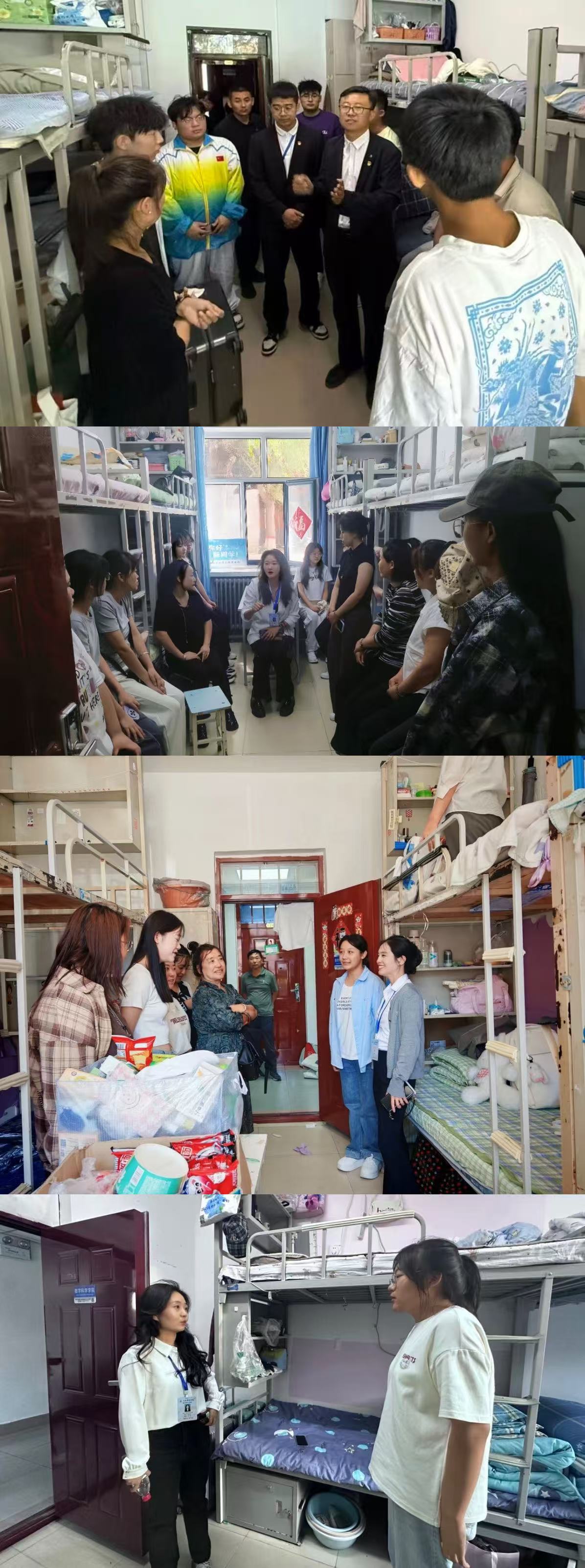 为深入了解2025级新生踏入校园后的生活实况,助力他们更好地融入学校的生活与学习节奏,党总支书记、院长高扬,学生工作办公室主任夏丽娜,团委副书记张鹭,2024级辅导员于海洋,2025级辅导员闫炎于9月6日走访新生寝室。旨在通过面对面交流倾听新生心声,及时解决他们在生活适应、环境熟悉等方面的问题。
