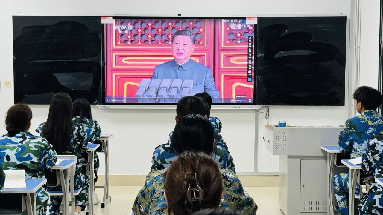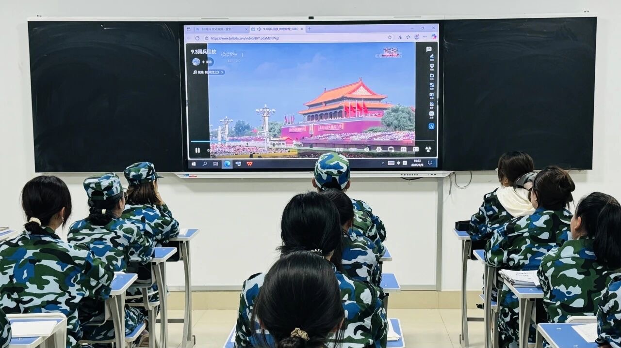 观看过程中,新生们全神贯注,被阅兵仪式上整齐划一的方阵、威武先进的装备以及昂扬奋进的精神风貌深深震撼。当一个个方队迈着铿锵有力的步伐通过天安门广场时,教室里不时响起阵阵掌声,气氛庄重而热烈。此次观看阅兵活动,不仅是对军训期间意志训练的延伸,更是一堂生动的国防教育和思想政治课。学院希望借此机会,让新生在军训中培养的纪律意识和集体观念得到升华,深刻感受国家的强大与民族的自豪,激励他们在今后的学习和生活中,发扬艰苦奋斗、团结协作的精神,努力提升专业素养和综合能力。