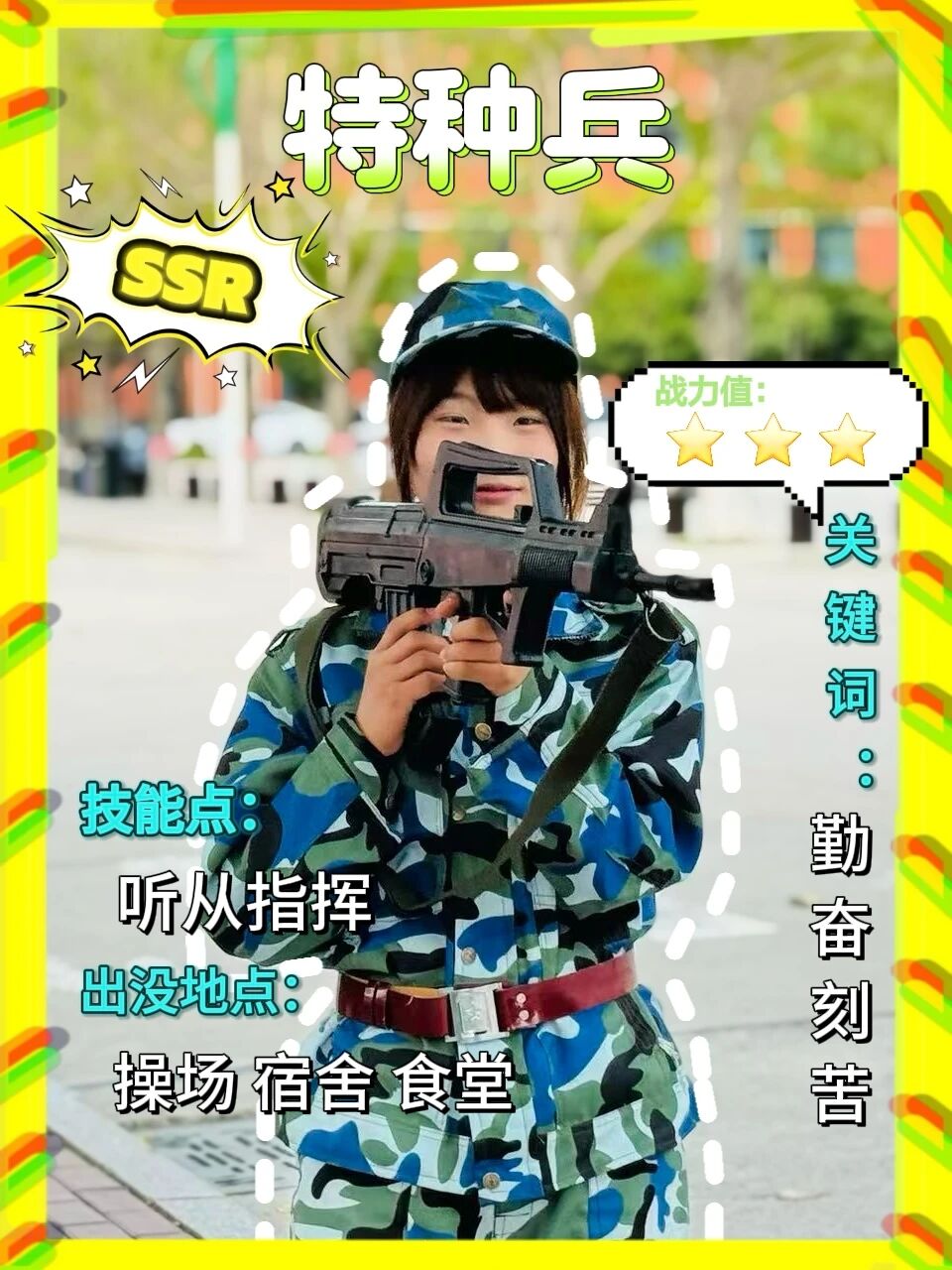 “特种兵”是军训场的“全能达人”,勤奋又刻苦,出没于各个场所。