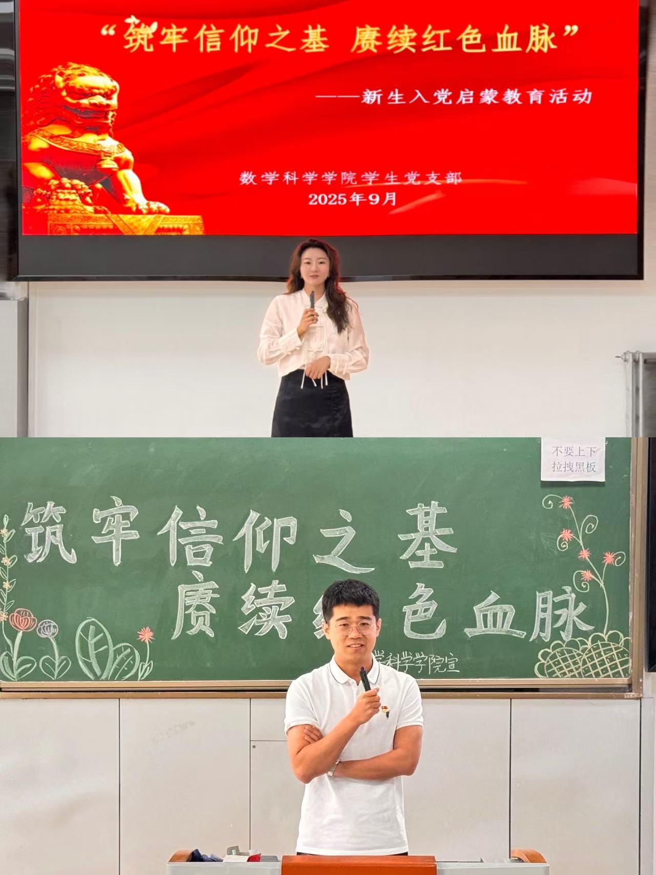 为引导新生筑牢信仰根基、明晰入党方向,千亿国际娱乐于9月15日在我院108教室组织2025级新生开展入党启蒙教育活动。本次活动由学生党支部书记夏丽娜与支部组织委员于海洋共同组织进行。