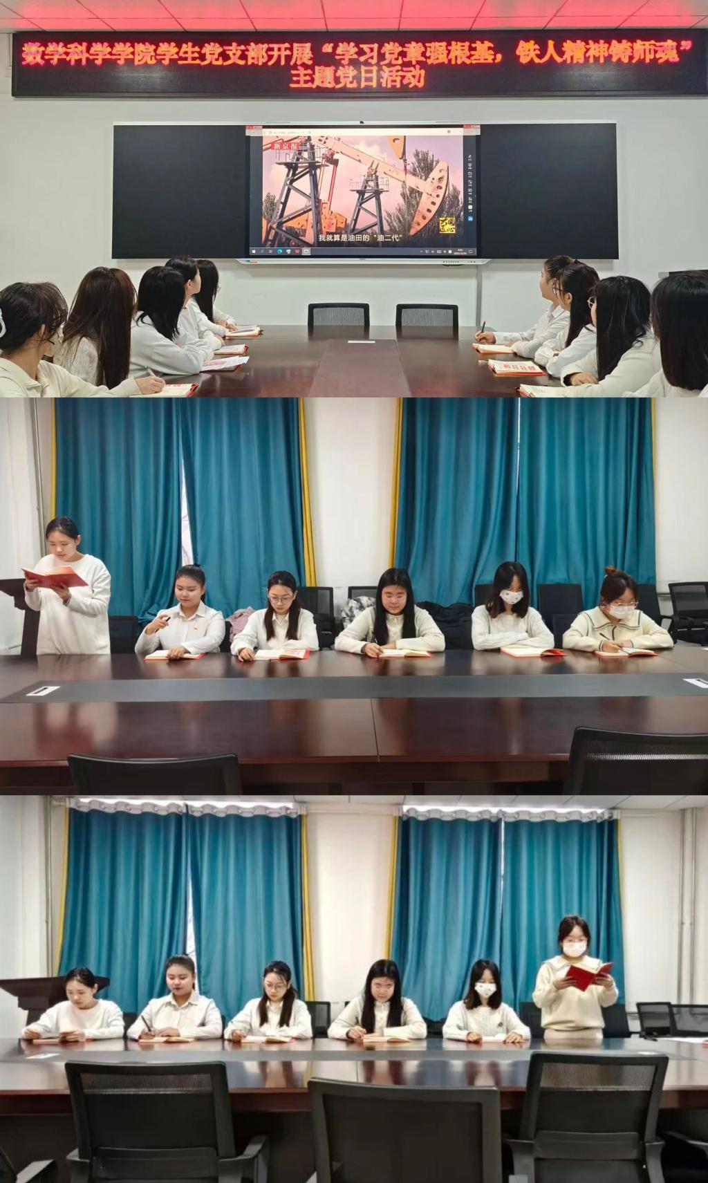 按照活动要求,会前,全体党员已逐章研读《中国共产党章程》,并重点学习铁人王进喜典型事迹材料。会上,夏丽娜聚焦党章中党员义务、权利与纪律要求的核心条款,结合新时代学生党员的使命职责进行深度解读,让党章要求更贴合青年成长实际。随后,全体党员集体重温铁人王进喜“宁可少活二十年,拼命也要拿下大油田”的铿锵誓言,深入感悟其拼搏精神的内涵。大家纷纷表示,铁人精神不仅是石油战线的精神财富,更是全体共产党员在新时代担当作为、攻坚克难的力量源泉。
