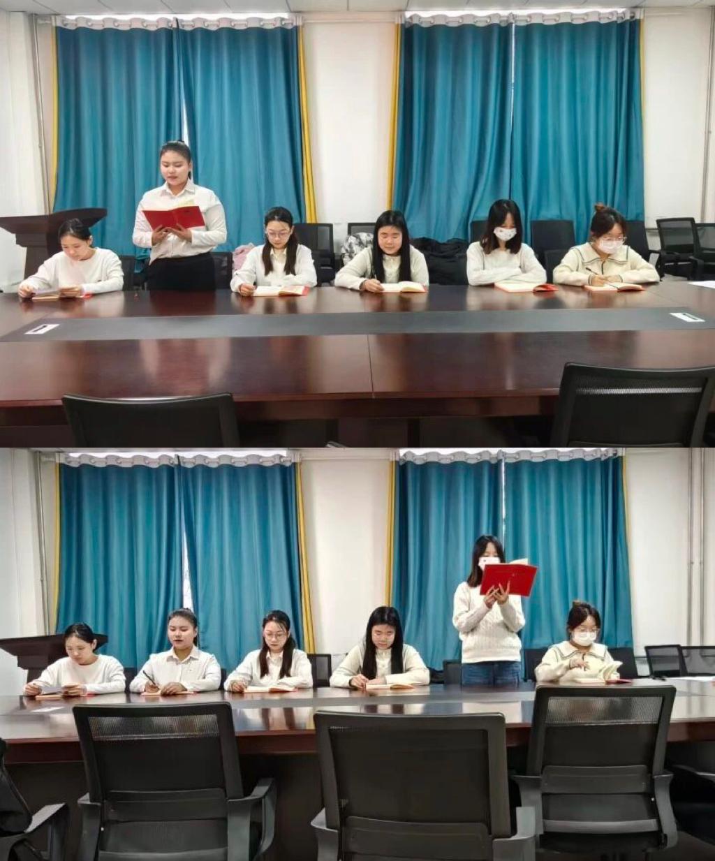 最后,活动进入“我的入党初心与为学之道”主题分享环节。数名学生党员代表结合个人入党经历、成长感悟和专业学习,畅谈对初心使命的理解。分享过程中,全体党员重温入党誓词,对照党章要求检视自身在思想、学习、作风等方面的表现,表达坚定理想信念、练就过硬本领、矢志奉献社会的决心。分享结束后,夏丽娜组织互动交流,党员们积极提问、畅所欲言,在思想碰撞中进一步凝聚共识、明确方向。